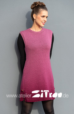 Die TUNIKA von ATELIER ZITRON wurde aus 100% Schurwolle (Merino) gestrickt. Von Weitem sieht sie fast unifarben aus, aber bei genauerem Hinsehen wird der hübsche Farbverlauf erkennbar. Die feine Struktur der Wolle betont die leicht lockere, lange Silhouette.